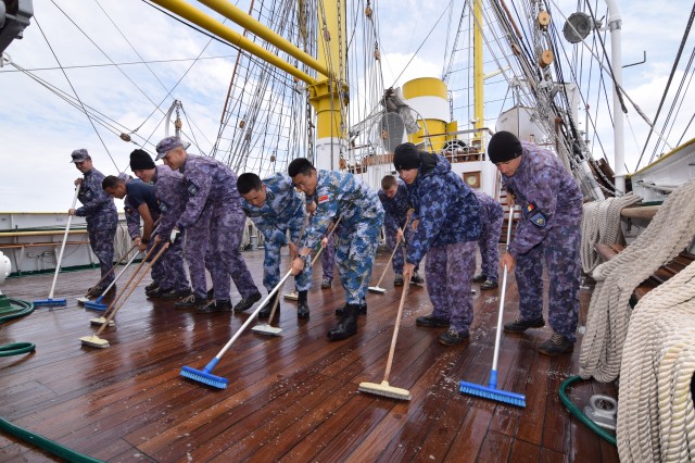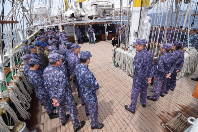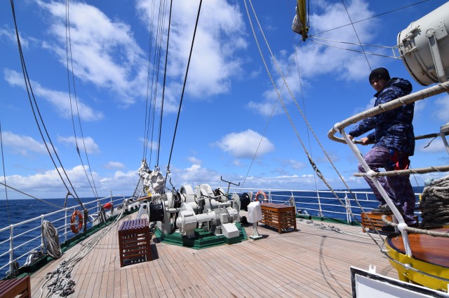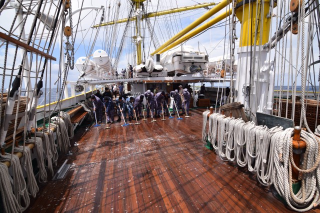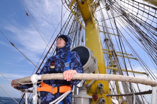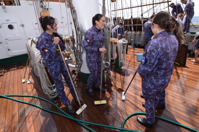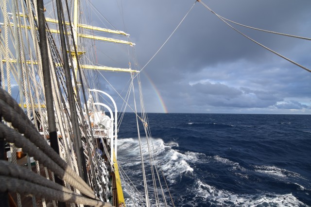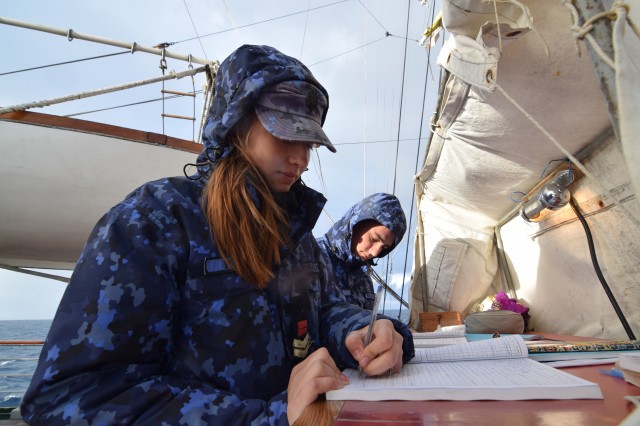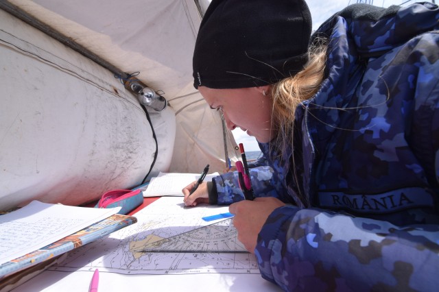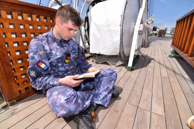Vremea potrivnică nu ne-a permis să navigăm cu vele, dar răgazul este binevenit deoarece cadeții mai au de învățat și repetat despre manevre și parâme, și mai au de făcut câteva antrenamente în arboradă înainte de prima întindere a velelor. Așa că, după orele de teorie din cazarmă, în care le-au fost prezentate fiecare parâmă și manevră a navei, în ciuda ruliului și tangajului, a vântului de 15 metri pe secundă care se schimbă după reguli doar de el știute, când din prova-babord, când din prova-tribord sau pupa, îi regăsești la puntea-centru în grupuri de câte doi-trei, notându-și conștiincioși în carnețele denumirea și rostul manevrelor, după ce șefii de far le-au mai explicat încă o dată, răbdători, universul parâmelor de la caviliere. Și cu tot răul de mare, cadeții citesc, îi regăsești pe teugă sau în borduri, în momente de relaxare cu o carte în mână; lecturile sunt din cele mai diverse: Ryu Murakami - Albastru nemărginit, aproape transparent sau Irina Binder – Fluturi, inclusiv George Orwell, cu romanul său celebru – 1984.