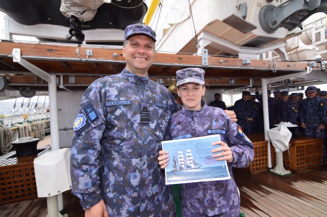 Pe data de 17 mai a fost sărbătorita la bord împlinirea a 80 de ani de la intrarea în serviciu a N.Ș. Mircea. Nu știm cum au decurs lucrurile în țară, dar, aici, la bord, zeul Neptun parcă a vrut sa ne pună la încercare loialitatea față de navă. Aceeași mare de gradul 3-4, cu destule perioade de gradul 5, aceeași hulă, de data aceasta, însa, cu un vânt de pupa care ne-a mărit viteza. Valurile spală în continuare hublourile cabinelor de sub dunetă, dar nimic nu împiedică tot echipajul să se adune la puntea centru pentru o scurtă ceremonie. Comandorul Gabi Moise, comandantul marșului, se adresează echipajului, reamintindu-le ce înseamnă spiritul lui Mircea, ce reprezintă velierul pentru Academia Navală și pentru Forțele Navale Române, precum și de ce trebuie să fie mândri că au privilegiul de a se afla la bord în anul 80 al existenței N.Ș. „Mircea”. Și tot acum, comandantul navei, comandorul Mircea Târhoacă, folosindu-se de acest moment festiv, o felicita pe studenta caporal Cristina Piuaru la împlinirea vârstei de 20 de ani chiar pe data de 17 mai; o aniversare pe care cu siguranță nu o va uita niciodată, și asta nu doar din cauza răului de mare! A urmat fotografia sau mai bine zis fotografiile de grup, pentru că fiecare a dorit să-și imortalizeze prezența la bord si în rândul echipajului la acest moment istoric. Comandorul Mircea Târhoacă, comandantul N.Ș. „Mircea”: „Ceea ce vreau să transmit tuturor este că N.Ș. „Mircea” va continua această tradiție de 80 de ani și o va duce mult mai departe, iar fiecare promoție care se instruiește la bord furnizează viitori marinari care vor duce mai departe această tradiție. Legat de ultimele zile pe mare, pot spune că atunci când vom ajunge în viitorul port, în Barcelona, toți cei de la bord vor ști ce înseamnă viața pe mare, viața la bordul unui velier; cu siguranță, vor ști, ce vor dori de la viitoarea carieră. Cele trei zile nu au fost atât de rele, pentru ca se putea și mai rău, dar N.Ș. „Mircea”, datorită proiectului trainic pe baza căreia a fost construită, dovedește că încă este o navă care poate să formeze multe alte generații de marinari. Marea agitată a vrut să demonstreze că bătrânul, si in același timp, tânărul „Mircea” poate executa mai departe, cu succes, misiunile încredințate”.