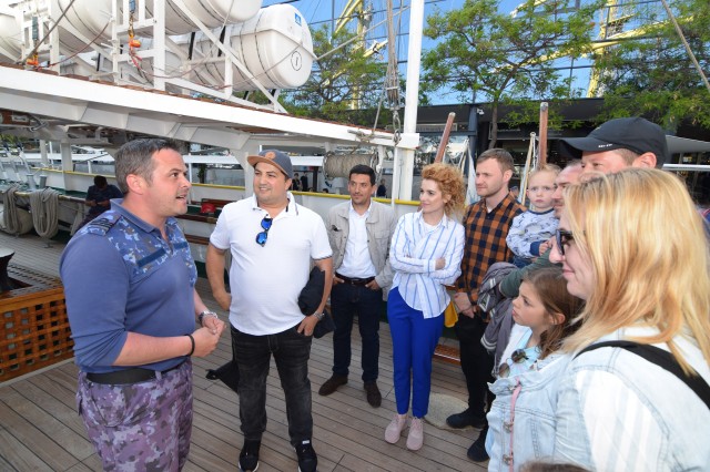 Luni, 20 mai, de dimineață, intram în Barcelona după șase zile grele pe mare și după ce am mai adăugat la „zestrea noastră nautică” încă 900 de mile marine. Velierul nostru a ajuns la Barcelona în urma unei invitații oficiale a Consulatului General al României din oraș, respectiv a ambasadei noastre de la Madrid, ceea ce evidențiază si mai pregnant cea de a doua misiune ca importantă a navei, aceea de diplomație navală, de promovare si reprezentare națională. Gazda noastră pe parcursul escalei a fost domnul Manuel Pleșa, consulul general al României la Barcelona care ne-a întâmpinat pe cheu, apoi a urcat la bord și s-a adresat întregului echipaj adunat la puntea centru și ne-a explicat și de ce a ținut să organizeze escala de aici a N.Ș. „Mircea”. Domnia sa a mai fost consul general și la Sevilla, unde a organizat o vizită a echipajului și navei în Andaluzia, în 2017; a fost în Palma de Majorca la vizita N.Ș. „Mircea” (jurisdicția consulatului de aici cuprinde și Insulele Baleare), iar acum, în 2019, a ținut să fim prezenți și la Barcelona, chiar în anul în care România exercită și președinția rotativă a Uniunii Europene. „Am făcut demersurile necesare, nu doar pentru că în acest an N.Ș. „Mircea” împlinește 80 de ani de la intrarea în serviciu, o vârstă cu adevărat impresionantă, dar era un prilej foarte bun de a prezenta nava autorităților regionale și locale, deopotrivă catalanilor și românilor de aici, în perioada în care deținem președinția rotativă a Uniunii Europene. Pentru dumneavoastră cred că este o bucurie și o mândrie aparte să navigați pe mările și oceanele lumii având tot timpul la catarg tricolorul românesc și vă doresc să vă bucurați de acest lucru in fiecare clipa a acestui marș istoric. Mult succes!” ne-a declarat domnul Manuel Pleșa, consulul general al României la Barcelona.