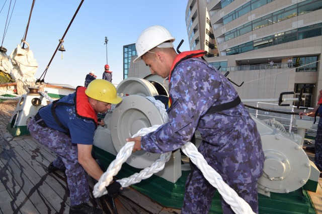 Pe timpul escalei nu au lipsit activitățile specifice, cum ar fi: ambarcare de alimente, scufundări ale scafandrilor de bord pentru inspecția operei vii a navei, mici lucrări de reparații si întreținere a navei; cu toate acestea, turiștii au putut sa admire, până târziu în noapte, pavoazul electric aprins pe nava.
