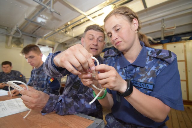Ulterior finalizării exercițiului de vitalitate, elevii și studenții intră în cazarmă, unde pe timpul marșului au loc cursurile. În timp ce studenții Academiei Navale „Mircea cel Bătrân” iau atenți notițe în cadrul unui curs multimedia susținut de locotenent Andra Nedelcu, instructor din cadrul Departamentului Navigație și Transport Naval al Academiei Navale „Mircea cel Bătrân”. În cazarma alăturată, elevii deslușesc intrigați și captivați tainele nodurilor marinărești sub îndrumarea căpitan-comandorului Răzvan Broască, instructor superior la Școala Militară de Maiștri Militari a Forțelor Navale. Cu răbdare și bunăvoință, instructorul le explică pe rând elevilor cum să plieze capetele saulei pentru a obține nodul corect, care la finalul cursului le va aduce un calificativ mai mult sau mai puțin satisfăcător, în funcție de aptitudini. Fie că a fost vorba de nod la jumătatea ochiului, nod de foarfecă, nod la trei cazici sau pumn de maimuță, toate au avut succes în a captiva atenția elevilor militari. Cât despre îndemânare și dexteritate... marșul de instrucție durează 94 de zile!
