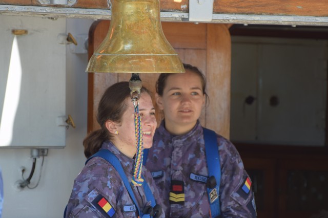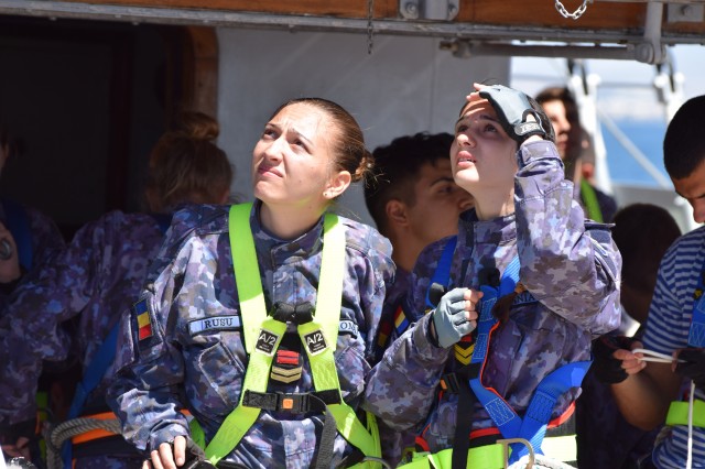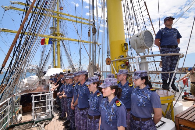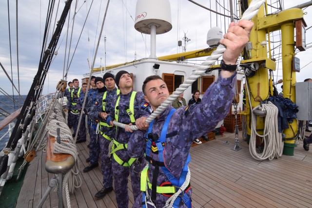 „La ora 16:00 domnul comandant a ordonat întinderea velelor triunghiulare, iar noi ne-am conformat. Împreună cu maiștri velari și soldați din cadrul Serviciului de Luptă Manevra Velelor, am început să întindem velele triunghiulare individual, pe faruri. (...) Întinderea a durat aproximativ o oră și de la ora 17:00 până la ora 20:00, am navigat cu vele, exclusiv doar cu velele triunghiulare. Ca o viteză medie, am prins undeva la 7 noduri. Imediat după masa de seară, pentru că vântul începuse să cadă, s-a ordonat strângerea velelor triunghiulare. Am început cu straiul randă, pentru că acela era cel mai aproape de motor, iar motorul trebuia să fie deja gata în acțiune”, ne dezvăluie Aspirant Laura Zburlea, Comandantul Serviciului de Luptă Manevra Velelor.