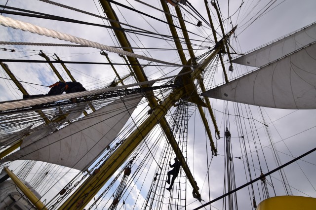 Navigația exclusiv cu velele triunghiulare este relativ atipică deoarece, de regulă, baza este pe velele pătrate, ne mai spune domnișoara aspirant, de la care mai aflăm că, pentru prima probă de întindere a velelor, se declară mulțumită de cum au decurs lucrurile.