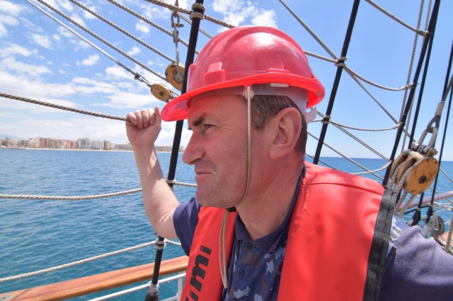 Afară, pe puntea centru și la 40 de metri înălțime forfota se face simțită. Continuă învergarea velelor. Marea Mediterană ne oferă zilele acestea un vânt propice navigației, astfel că până la Almería vom avea cel puțin o probă de navigație cu vele.