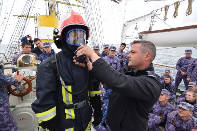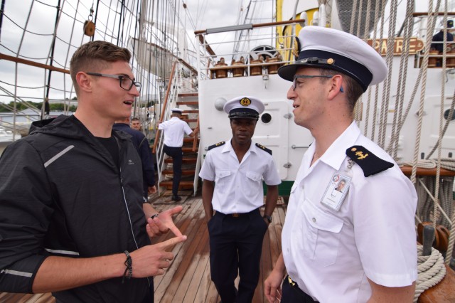 Duminică dimineață am părăsit baza navală din Brest și ne-am îndreptat spre Le Havre. Continuă rutina vieții la bord în navigație cu motor, cu ateliere de lucru în care li se prezintă cadeților echipamentele de vitalitate și stins incendii sau acordarea primului ajutor. Luni noapte am intrat pe fluviul Sena cu pilot la bord pentru a ajunge la Rouen marți dimineață și a participa la festivalul maritim Armada de Rouen 2019. Au fost doar două zile de navigație și 240 de mile marine dar pe un itinerariu superb pe Sena Maritimă și o sărbătoare maritimă extraordinară unde ne așteaptau deja peste 50 de mari veliere și nave din întreaga lume, inclusiv nava soră Eagle din Statele Unite ale Americii.