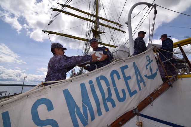 În ziua în care în Normandia se comemorau 75 de ani de la debarcarea aliaților, N.Ș.Mircea intra spectaculos în baza navală din Brest cu cadeții salutând pe vergi și în sunetul muzicii bretone care răsuna din difuzoarele navei, spre încântarea gazdelor noastre care au remarcat cu plăcere gestul nostru de curtoazie. Velierul școală se află pentru a patra oară aici la Brest, după participarea din anul 2008 la festivalul maritim Sărbătoarea Brestului, după escala din 2004, la întoarcerea din marșul din Statele Unite și după cea din 28 noiembrie 1965 – 6 ianuarie 1966, pentru reparații strict necesare după furtuna care aproape a scufundat nava noastră aflată la remorcă în drum spre șantierul Blohm und Voss după ce parâma s-a rupt și a rămas în voia valurilor. Însă eroismul echipajului a fost cel care a salvat nava după două zile și nopți de luptă cu oceanul și desigur, și intervenția remorcherului francez Rhinoceres care a readus nava în portul Brest. Episodul dramatic este bine cunoscut în marina noastră dar, vă asigur, că și printre marinarii din Brest după cum am avut ocazia să constat după o întâlnire cu jurnaliștii de aici iar în precedenta escală din 2008 la bord a fost organizată și o întâlnire între salvatorii francezi de atunci, repectiv comandantul remorcherului Rhinoceres, Vincent Craignou și echipajul român, bine mediatizată la momentul respectiv.