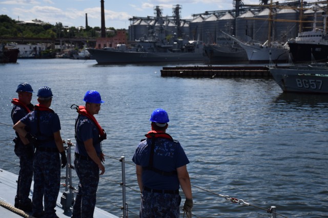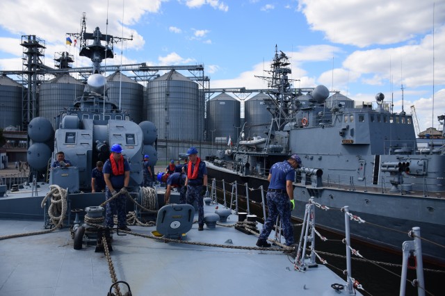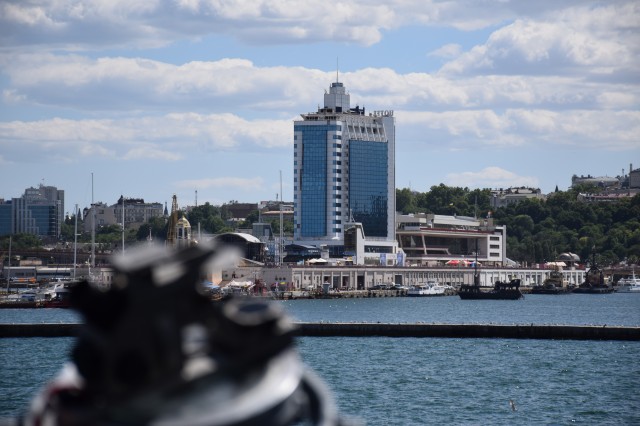Intrarea navei purtătoare de rachete ”Lăstunul” în Portul Odesa