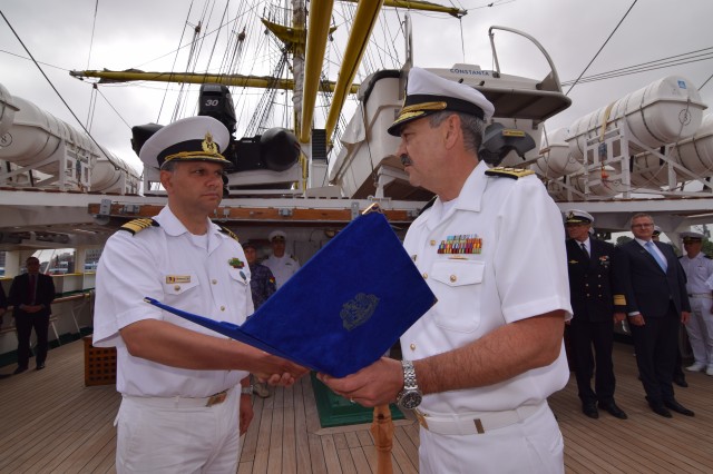 Ziua a continuat cu prânzul oferit la bord la care au participat printre alții, din partea gazdelor, Klaus Rainer Kirchhoff, consulul onorific al României la Hamburg, viceamiralul Andreas Krause, Karsten Witt, directorul Poliției Maritime din Hamburg și Arendt Schulze din partea șantierului Blohm&Voss. ”Ziua de azi a încununat eforturile a mii de oameni depuse de-a lungul a 80 de ani, începând cu construcția acestei minuni a Forțelor Navale Române, N.Ș.Mircea, și continuând cu toate eforturile de instruire și întreținere de la bordul navei care timp de 80 de ani nu s-a oprit niciodată din misiunea sa, odată de a instrui echipajele de viitori ofițeri și maiștri militari ale Forțelor Navale Române și, în al doilea rând, de a promova imaginea României. Să nu uităm că N.Ș.Mircea este un ambasador extraordinar al României pe toate meridianele lumii pe unde a călătorit până acum, fapt în sfârșit recunoascut oficial astăzi prin acordarea acestui titlu de ambasador onorific în serviciul României de către ministrul Apărării Naționale.” ne-a precizat și domnul comandor conf.univ.dr.Octavian Tărăbuță, comandantul Academiei Navale Mircea cel Bătrân.