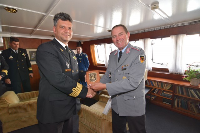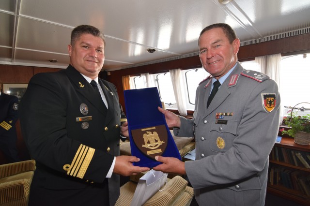 A urmat fotografia de grup de la puntea centru, de data aceasta una de ”colecție” pentru toți cei care au fost prezenți aici, echipaj sau invitați, foarte prețioasă pentru că indiferent de cariera sau navele pe care vor fi în viitor, pentru ei va fi important și nu vor uita niciodată că au fost o parte, poate mică dar parte, a acestui moment unic din viața N.Ș.Mircea și din viața profesională a fiecăruia. Conform programului s-a vizitat nava și este inutil să menționez mândria vizibilă care se observa pe fețele oaspeților germani care se fotografiau cu fiecare placă pe care se regăsea numele șantierului, numărul navei și anul, o mândrie justificată a lucrului nemțesc bine făcut dar, aș putea completa, și a celor care l-au menținut în această stare tehnică de invidiat timp de opt decenii, uneori în vremuri de restriște.”Vorbim de o recunoaștere oficială din partea Ministerului Apărării, și nu numai, primind acest titlu de ambasador onorific în serviciul României. Este un titlu pe deplin meritat, atât din punct de vedere al navei în sine cât și a echipajului, nu doar a echipajului actual ci al tuturor care s-au perindat pe la bord, vorbim încă o dată de 70 de promoții de ofițeri și echipaje. Nava nu este o ființă vie atât timp cât nu are echipajul la bord. Nava și echipajul împreună ca un tot unitar creează acest spirit – noi îl numim spiritul Mircea – care face dintr-o navă o ființă vie, un ambasador peste mări și oceane, făcând astfel România, pe de o parte, vecină cu toate celelalte țări care au deschidere la mare, iar pe de altă parte, și cu celelalte popoare care împărtășesc acest spirit maritim.” ne-a declarat viceamiralul Alexandru Mîrșu, șeful Statului Major al Forțelor Navale Române.