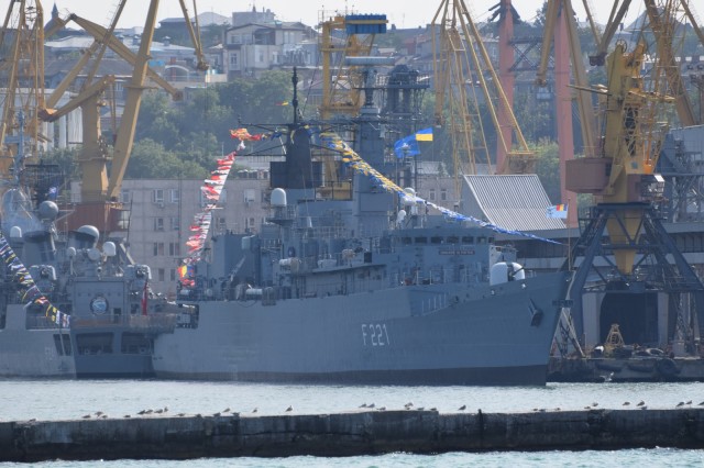 Duminică, 7 iulie, marinarii români împreună cu diplomaţii români din Ucraina, au continuat misiunile de reprezentare a Forţelor Navale şi a ţării, participând la activităţile organizate cu ocazia Zilei Marinei Ucrainiene. De asemenea, personalul Consulatului General al României din Odessa a vizitat corveta „Contraamiral Eustaţiu Sebastian” şi nava purtătoare de rachete „Lăstunul”. Prin modul în care a fost organizată vizita, prin modul în care şi-au prezentat misiunile, tehnica şi aparatura de la bord, marinarii au indus vizitatorilor sentimentul că pe pământul românesc, reprezentat de nave, s-au aflat acasă.
