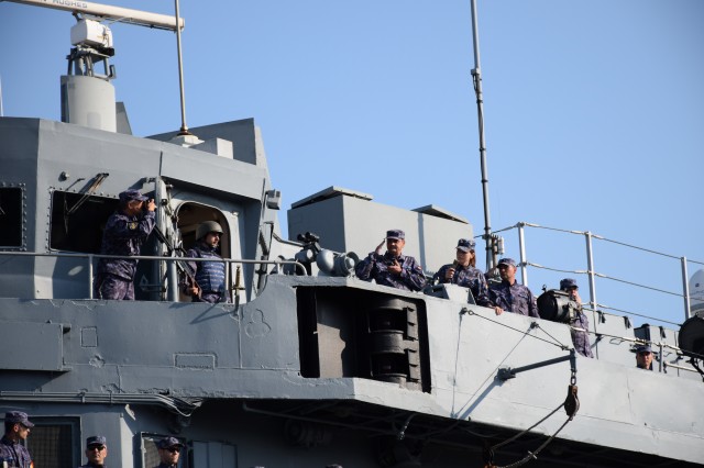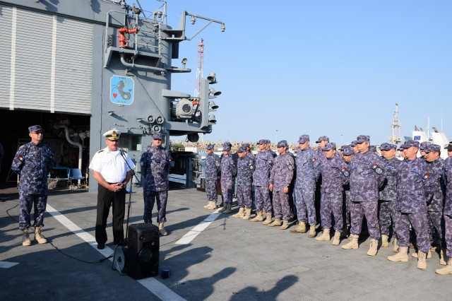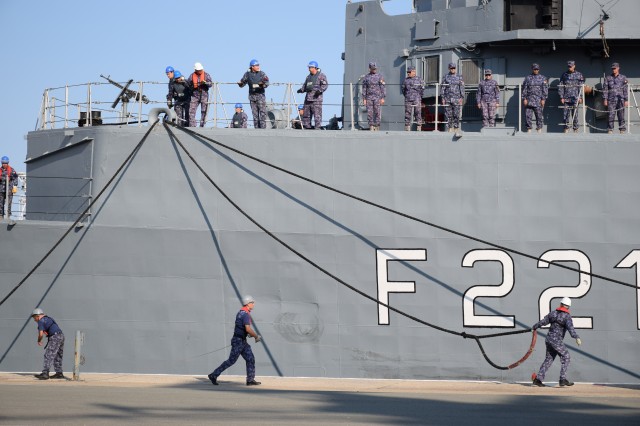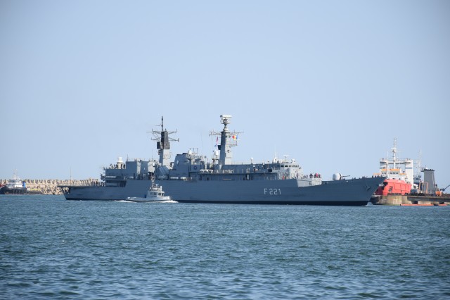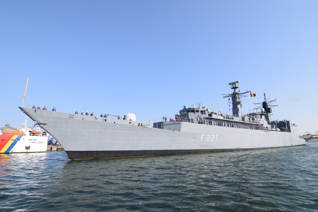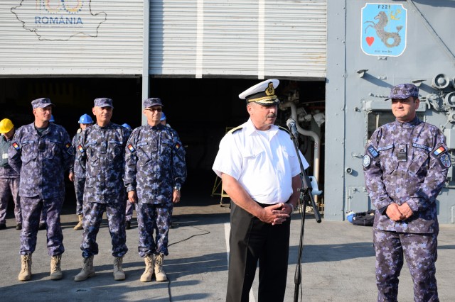 Prezent la sosirea navei, contraamiralul de flotilă Daniel Căpăţînă, comandantul Flotei, a mulţumit echipajului fregatei pentru eforturile depuse în timpul misiunii, a felicitat personalul Grupului de Elicoptere ambarcat la bordul fregatei pentru Ziua Aviaţiei sărbătorită sâmbătă, 20 iulie, şi le-a urat tuturor mult succes în misiunile viitoare.