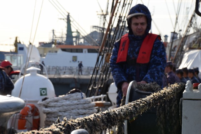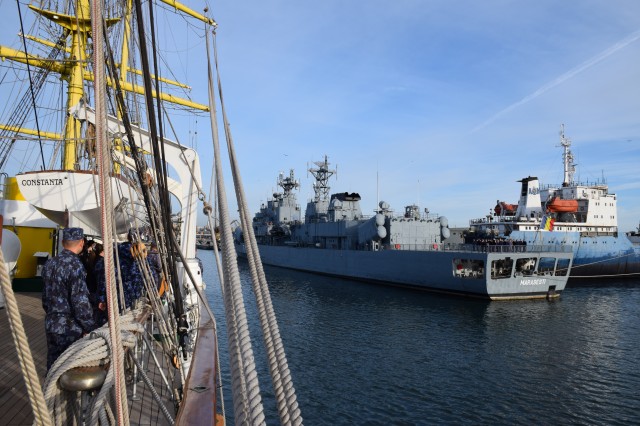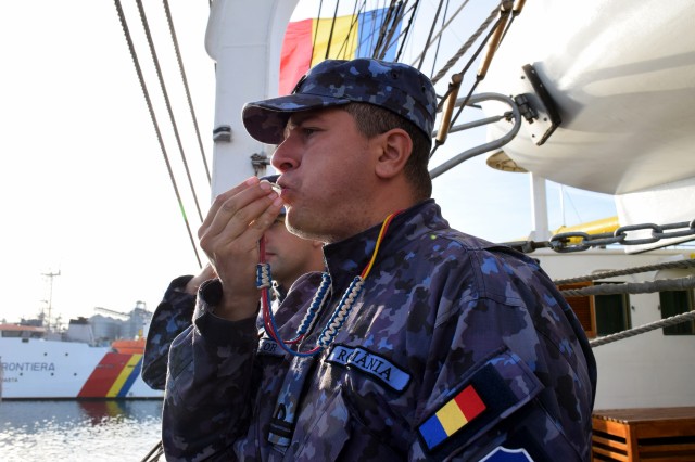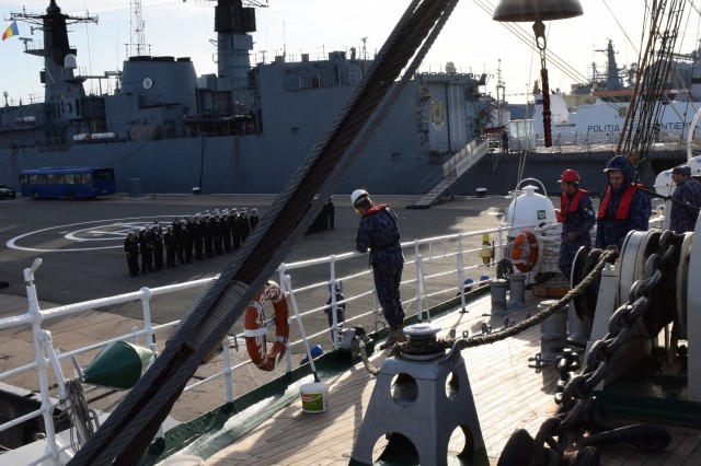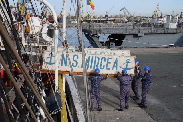Intrarea Navei-școală "Mircea" în Portul Constanța