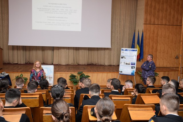 Joi, 26 septembrie, dr. Florica Topîrceanu, cercetător ştiinţific la Institutul de virusologie al Academiei Române, membră a comisiei naţionale pentru cercetări antarctice şi comandorul Marian Săvulescu, şeful oficiului Instrucţie la Statul Major al Forţelor Navale, s-au întâlnit cu elevii de clasa a IX-a de la Colegiul Naţional Militar „Alexandru Ioan Cuza”.