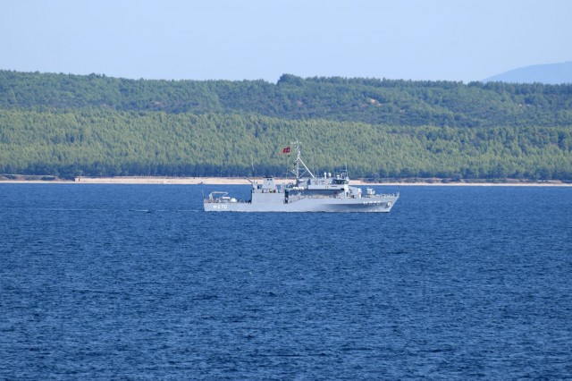 Nava maritimă hidrografică „Căpitan-comandor Alexandru Cătuneanu” a ridicat ancora marţi, 8 octombrie, la orele serii, traversând în siguranţă ultima parte din Dardanele – foarte aglomerată la acea oră – şi ocupându-şi locul stabilit în Golful Saros. NMH „Căpitan-comandor Alexandru Cătuneanu” face parte dintr-o grupare de vânătoare de mine din Turcia, nava comandant a grupării fiind TCG „Akçay” (M 270), o navă din clasa Aydin.