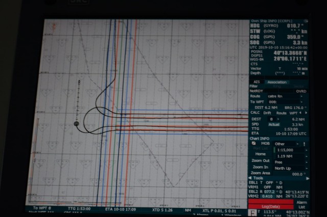 Tot acest ritual s-a repetat în fiecare zi de pe mare şi atunci când s-a schimbat raionul de căutare. Joi, 10 octombrie, a fost descoperit un contact, raportat conform procedurilor la nava comandant. În funcţie de deciziile şi ordinele pe care le va transmite nava comandant, grupa de scafandri EOD aflată la bord este pregătită să intervină. Dar, despre a doua fază a exerciţiului NUSRET 19 de pe mare, veţi putea afla în corespondenţa viitoare. În Golful Saros, misiunile de căutare a minelor marine au fost momentan stopate de către conducerea exerciţiului, urmând a fi reluate începând de duminică seară.