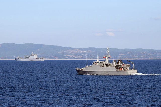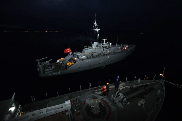 În toată această perioadă, cei 12 scafandri EOD, aflaţi sub comanda căpitan-comandorului Mihai Iordache sunt acum în tabăra de la Mecidiye şi acţionează în nordul Golfului Saros pentru descoperirea şi neutralizarea minelor marine. Ei vor reveni la bordul navei la finalul exerciţiului, înainte de marşul spre ţară.
