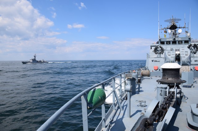 Corveta „Contraamiral Horia Macellariu” (265) participă, în perioada 15-17 octombrie, la un exercițiu naval, în zona Insulei Șerpilor și în apele internaționale ale Mării Negre, împreună cu nava purtătoare de rachete „Pryluky” (Ucraina) și cu distrugătorul american USS „Porter”. Exercițiul contribuie la consolidarea parteneriatului dintre Ucraina și statele membre NATO, în domeniul forțelor navale, urmărind realizarea interoperabilității echipajelor la nivel tactic, prin aplicarea procedurilor de operare la standarde NATO, în domeniul luptei împotriva amenințărilor la adresa securității.