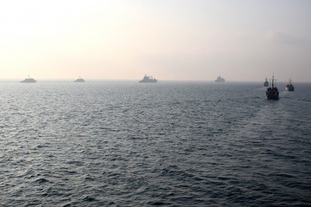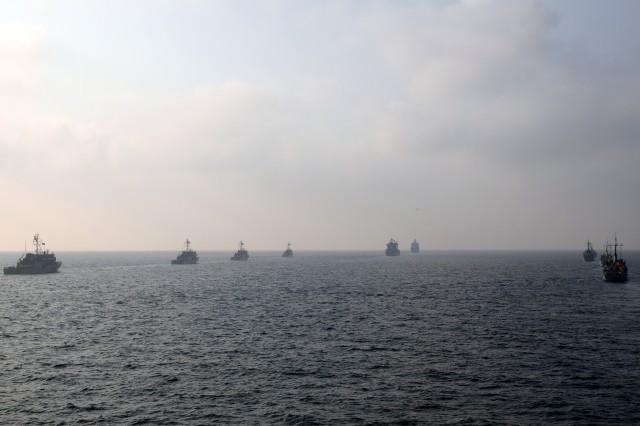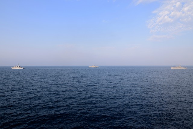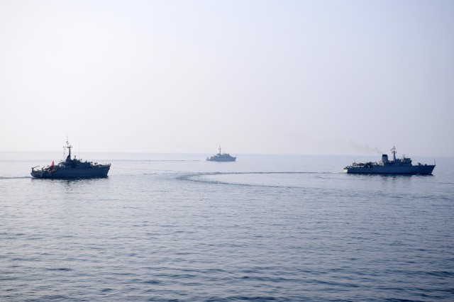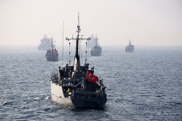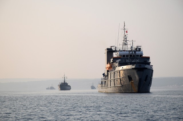 12 nave din Italia, Grecia, Spania, Turcia şi România au exersat comunicaţii navale şi au executat manevrele de apropiere şi de menţinere a diferitelor formaţii navale.