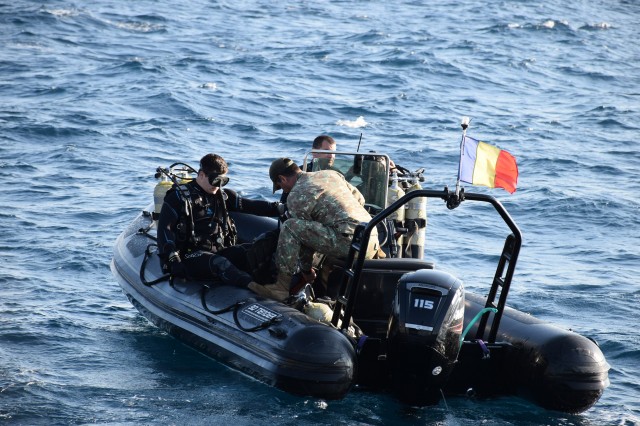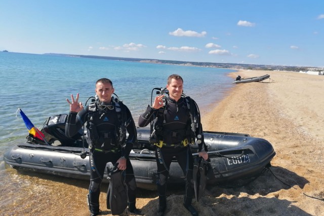 Scafandrii EOD au avut tabăra la Mecidiye şi au acţionat alături de colegii lor din Belgia, SUA şi Turcia, în nordul Golfului Saros, pentru descoperirea, identificarea şi neutralizarea minelor marine în scopul asigurării libertăţii de navigaţie.