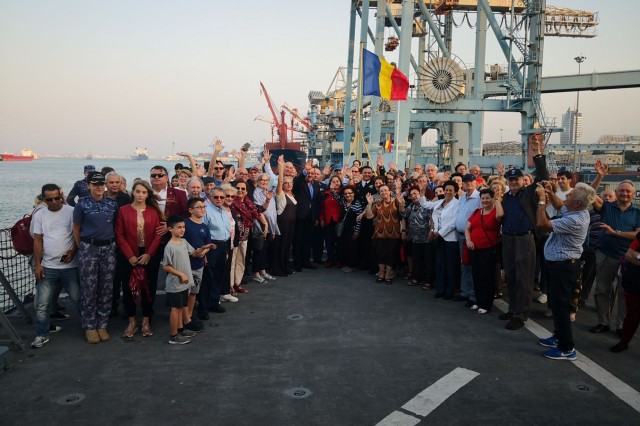 Escala fregatei „Regele Ferdinand” în Portul Haifa a prilejuit organizarea unei zi a porților deschise pentru românii stabiliți în Israel. Marinarii militari au primit marți, 5 noiembrie, peste 100 de români, la bordul navei, cu care au discutat despre România, despre tainele meseriei de marinar și despre instituțiile de învățământ militar de marină. Vizitatorii au fost impresionați de expoziția de pictură cu tematică marină și s-au bucurat de cadourile simbolice primite din partea elevilor și studenților din Forțele Navale Române.