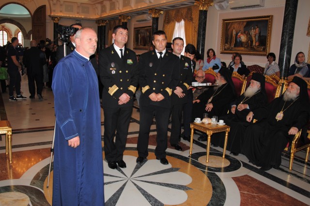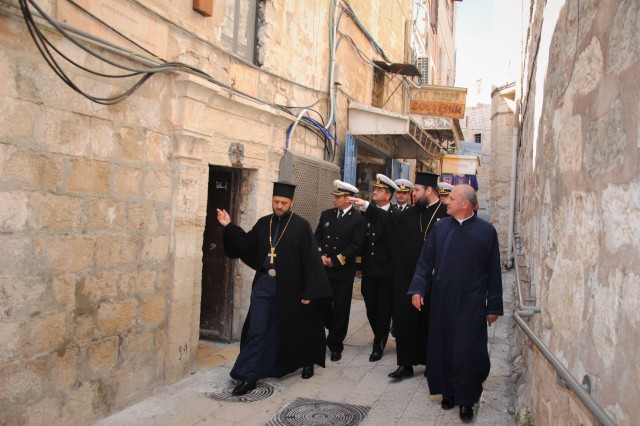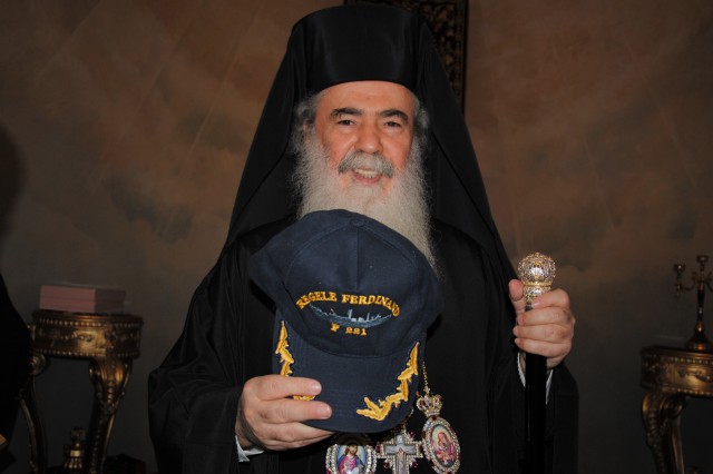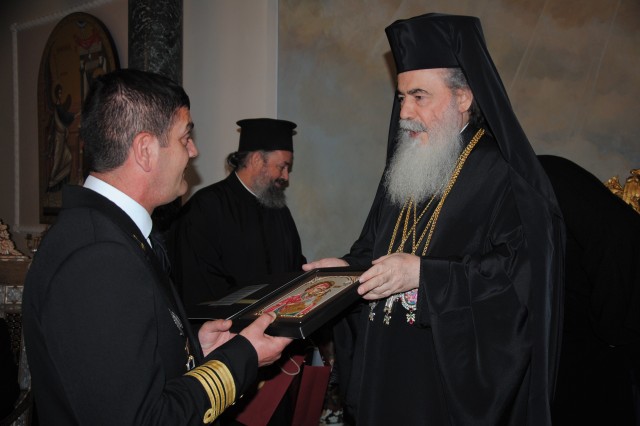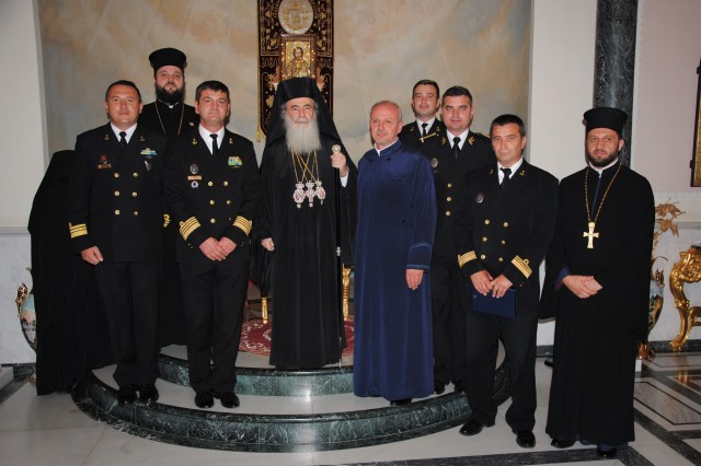 După această primire, delegația navei, din care a făcut parte și preotul misiunii, Nicolae Argatu, a fost primită de către Preafericitul Părinte Patriarh Teofil al III-lea, la sediul Patriarhiei Ierusalimului, care a spus că se va ruga pentru echipajul fregatei și pentru ca „misiunea să fie împresurată cu binecuvântări și mult ajutor de la Dumnezeu”. După întâlnirea oficială cu Patriarhul Ierusalimului, militarii români s-au alăturat pelerinilor și au mers în locurile sfinte, rugându-se pentru sănătate, liniște, pace și împliniri sufletești, atât personale, cât și pentru cei dragi.
