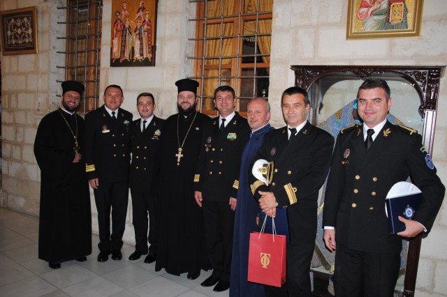 Ultima zi a Operației NATO „Sea Guardian 19” s-a încheiat cu aceiași direcție a gândurilor de la început de misiune, către Dumnezeu. Delegația fregatei „Regele Ferdinad”, condusă de comandor Marian Ioan, a desfășurat marți, 5 noiembrie, o vizită oficială la Reprezentanța Patriarhiei Române la Ierusalim, unde a fost primită cu căldură și dragoste frățească de către Prea Cuviosul Arhimandrit Teofil Anăstăsoaie.