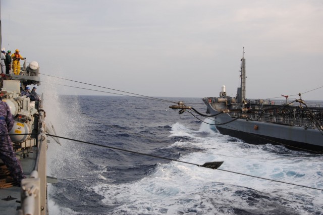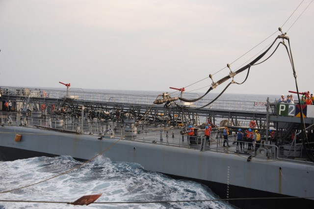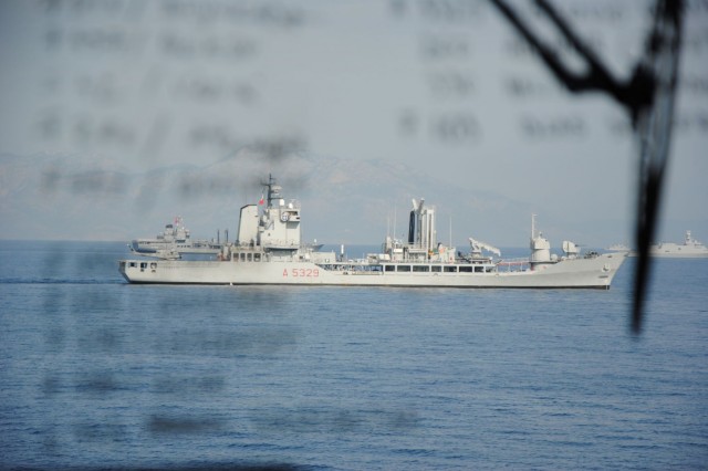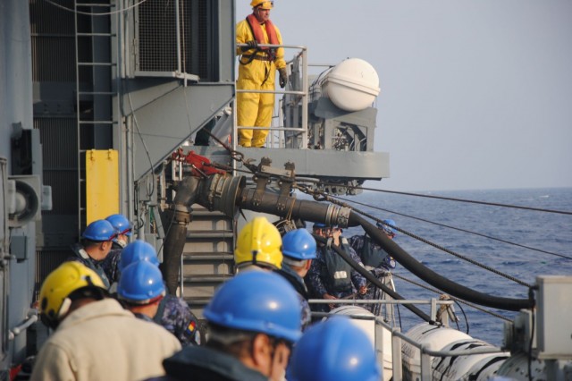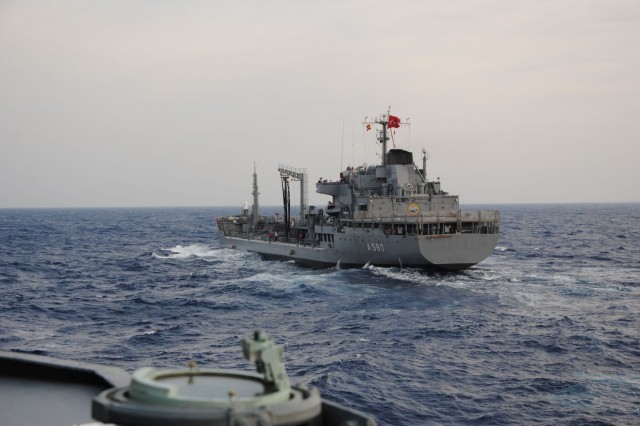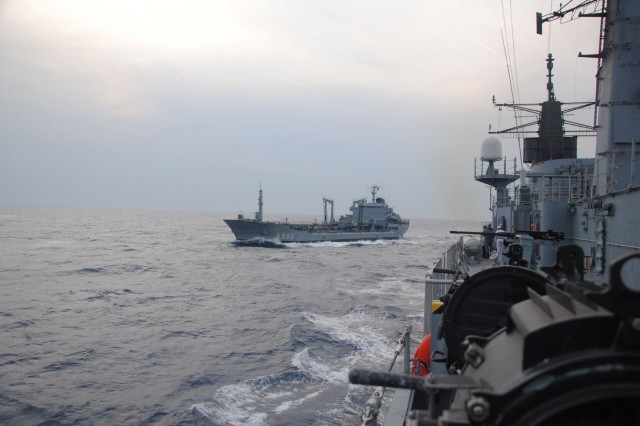 O altă activitate importantă, realizată de echipajul românesc în Marea Mediterană, a constat în procesul de realimentare pe mare. Printre activitățile de instrucție în comun cu partenerii străini și exercițiile de vitalitate a navei, marinarii militari români au luat parte la una dintre cele mai complexe activități de manevra a navei, transferul de combustibil de la un tanc maritim. Nivelul de dificultate al operațiunii a fost ridicat odată cu intensificarea vântului și cu creșterea mărimii valurilor, marea fiind una destul de neprietenoasă. În ciuda problemelor de natură hidro-meteorologică, militarii implicați în activitate au executat corect fiecare etapă, reaprovizionarea realizându-se în timpul alocat și fără incidente.