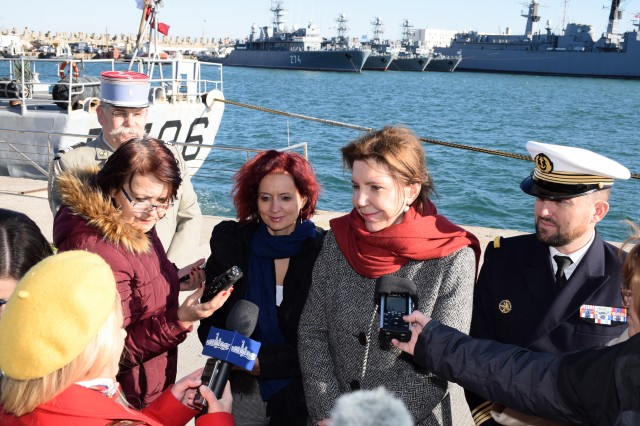 De asemenea, vineri, 6 decembrie, începând cu ora 12.15, la bordul navei franceze va fi organizată o conferință de presă la care vor participa locotenent-comandorul Maxime Leroy și doamna Michele Ramis, Ambasadorul Franței în România.