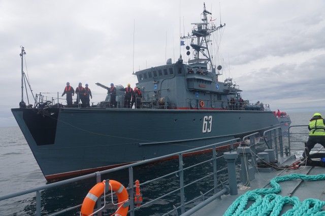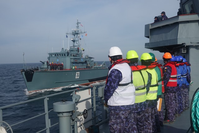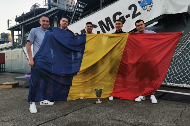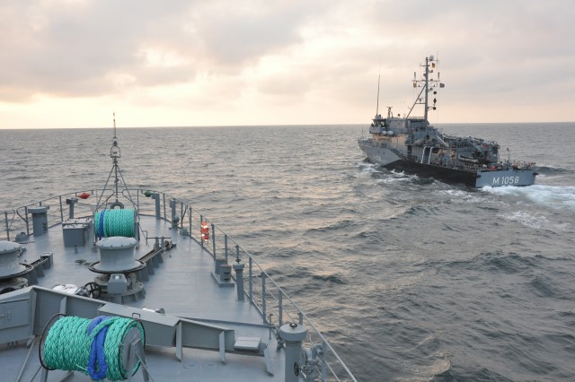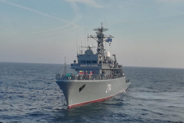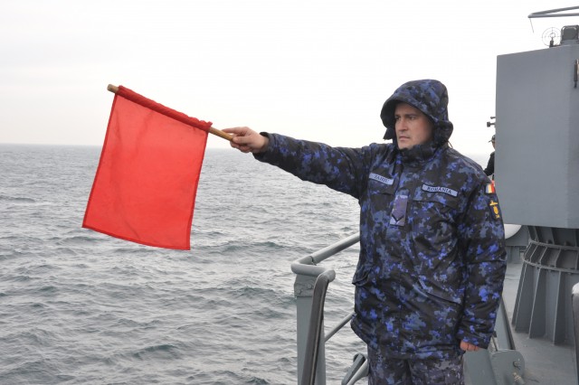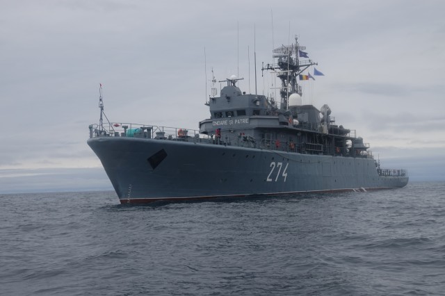 Gruparea are, în această perioadă, în compunere, alături de puitorul de mine și plase „Vam. C-tin Bălescu”, nave aparținând Forțelor Navale ale Bulgariei, Germaniei și Turciei. În primele două săptămâni, care s-au scurs de la plecarea din Portul Constanța, gruparea navală condusă de căpitan-comandor Valentin-Cătălin Vlad, a desfășurat antrenamente în comun, în Marea Neagră, mare care își merită pe deplin renumele de mare periculoasă și imprevizibilă, scoțând din adâncuri, nu de puține ori, „berbecuții” - denumirea marinărească a valurilor albe înalte și înspumate.