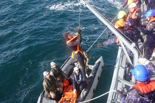 Un exercițiu complex, pe care gruparea SNMCMG-2 l-a desfășurat în prima săptămână în Marea Neagră, a fost acela al simulării unui incident de scufundare. Astfel, scenariul a prevăzut ca un scafandru al vânătorului de mine „Akcay” să fie implicat într-un accidentat pe timpul desfășurării unei scufundări. Ambarcațiunea rapidă turcească, care se afla în sprijinul activității de scufundare, l-a recuperat din apă și l-a adus la bordul navei românești, pentru a putea fi diagnosticat și tratat în camera hiperbar, de către specialiștii Centrului de Scafandri, aflați la bordul navei comandant. Toate procedurile de recuperare și transfer au avut, ca scop principal, dezvoltarea interoperabilității și creșterea vitezei de reacție a echipajelor în astfel de situații critice.
