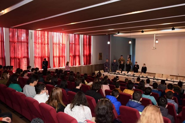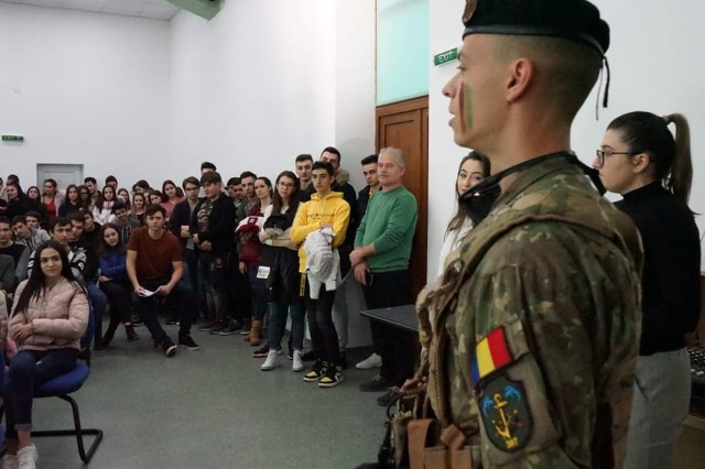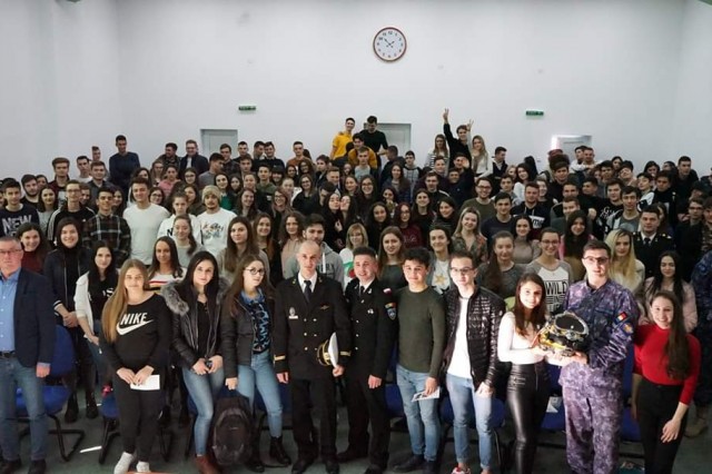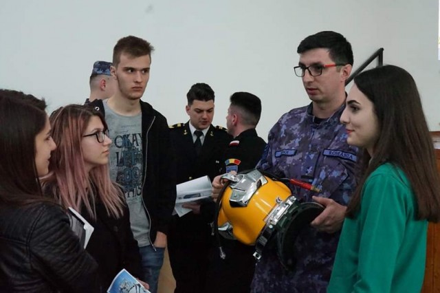 Marinarii militari s-au întâlnit astăzi, 18 februarie, cu peste 700 de elevi din Curtea de Argeș, pentru a le prezenta ofertele educaționale ale instituțiilor militare de învățământ de marină.