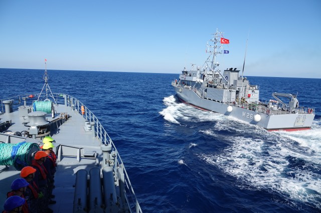 Parteneriatul interaliat a fost consolidat prin exerciții desfășurate de către gruparea navală SNMCMG-2 și Forțele Navale ale Turciei, în estul Mării Mediterane, care au cuprins manevre și evoluții de trecere a navelor în convoi printr-un canal dragat, fiind folosite tehnici și proceduri de remorcaj și de realimentare cu combustibil pe mare.