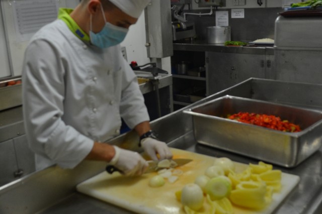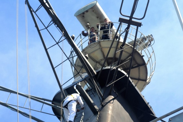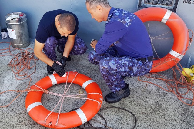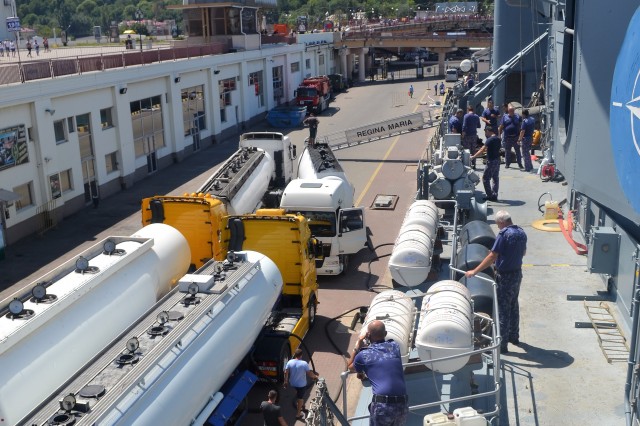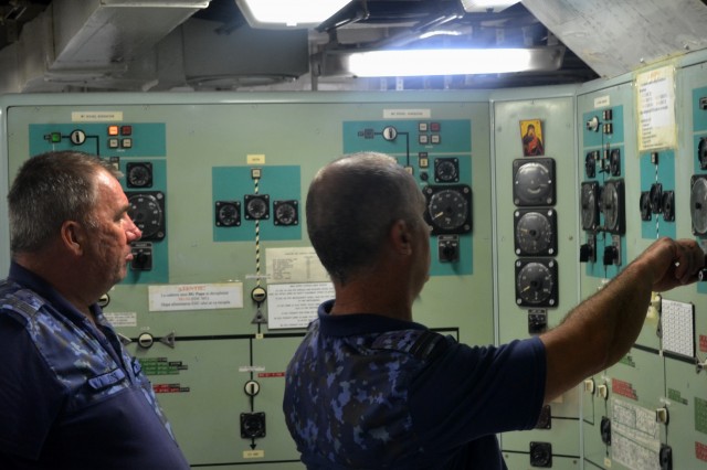 Acostarea într-un port nu înseamnă pentru marinarii militari sfârşitul programului de muncă sau luptă. Începe o nouă etapă, care presupune realimentări de combustibil şi apă, iar tehnica intră în verificări. De asemenea, logisticienii, oamenii nevăzuţi, dar extrem de importanţi, refac stocurile cu tot ceea ce este necesar pe mare pentru marinari. Bucătarii îşi continuă programul de hrănire a celor 240 de oameni aflaţi la bordul navei. În fiecare zi de duminică, părintele Nicolae Argatu, a adus alinare în sufletele marinarilor prin oficierea unei slujbe religioase.