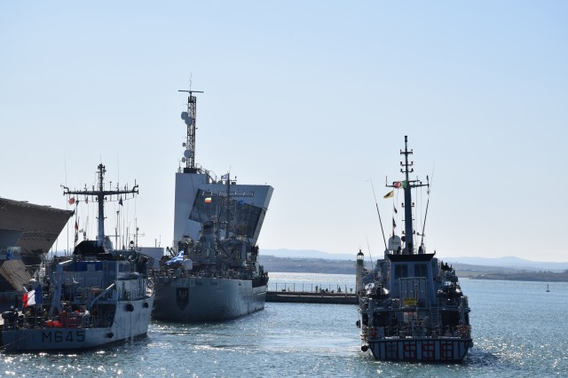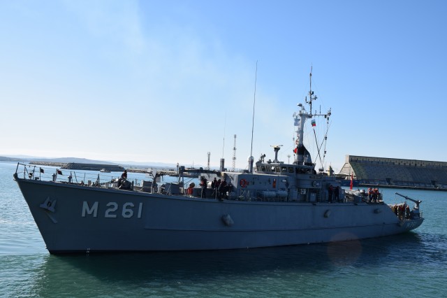 După ce a străbătut aproximativ 130 de mile marine, dragorul maritim „Locotenent Lupu Dinescu” a făcut o escală de trei zile în portul Burgas, Bulgaria, pentru refacerea capacității de luptă. Nava este integrată în gruparea navală permanentă NATO de luptă contra minelor SNMCMG-2 (Standing NATO Maritime Group), în perioada 29 octombrie – 18 noiembrie, și desfășoară misiuni în Marea Neagră împreună cu nava de sprijin logistic „Aliakmon” (Grecia), nava-comandant a grupării, vânătoarele de mine „Alghero” (Italia), „Duero” (Spania), „Orion” (Franța), „Edremit” (Turcia) și „Tsibar” (Bulgaria).
